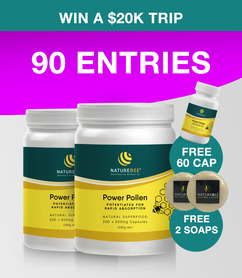 90 ENTRIES – Power Pollen Extravaganza Pack (x2 200 Cap Bottles PLUS Bonus x1 60 Cap Bottle + x2 Soap)
