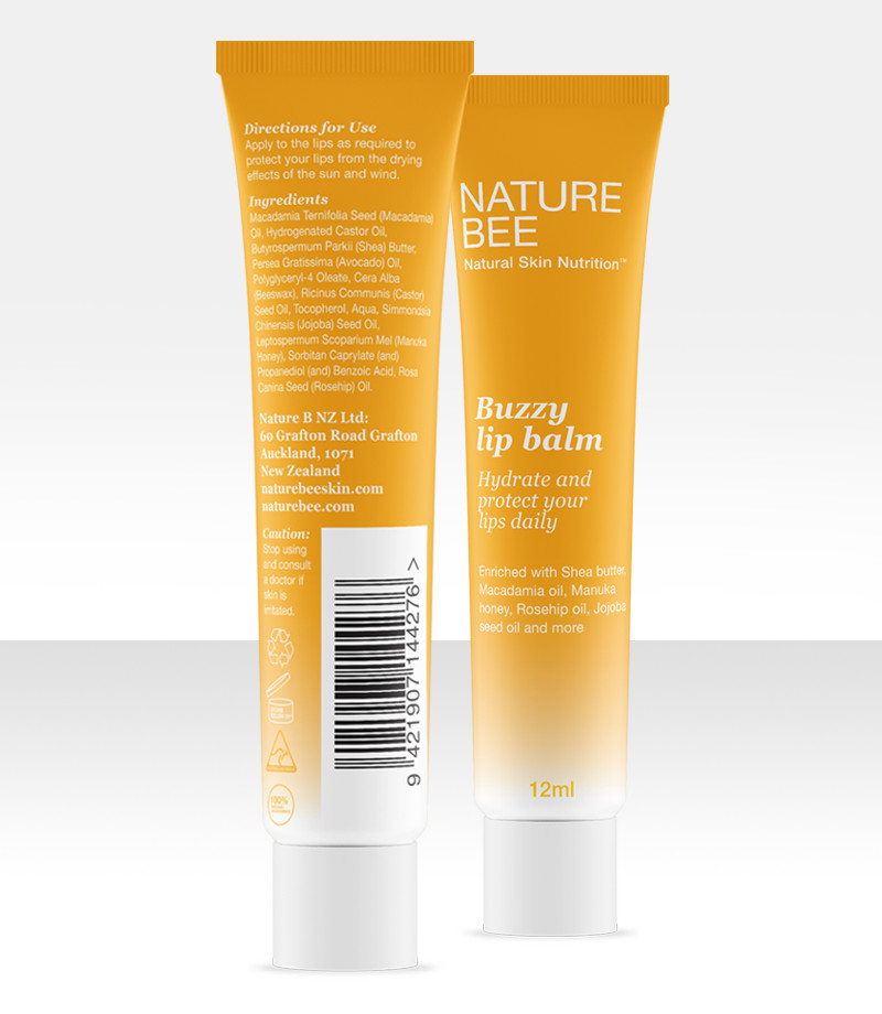 By blending Shea butter, Macadamia oil, Manuka honey, Rosehip oil, Jojoba seed oil and other 100% pure Australian ingredients, Buzzy Lip Balm hydrates, repairs, and protects beautiful lips.